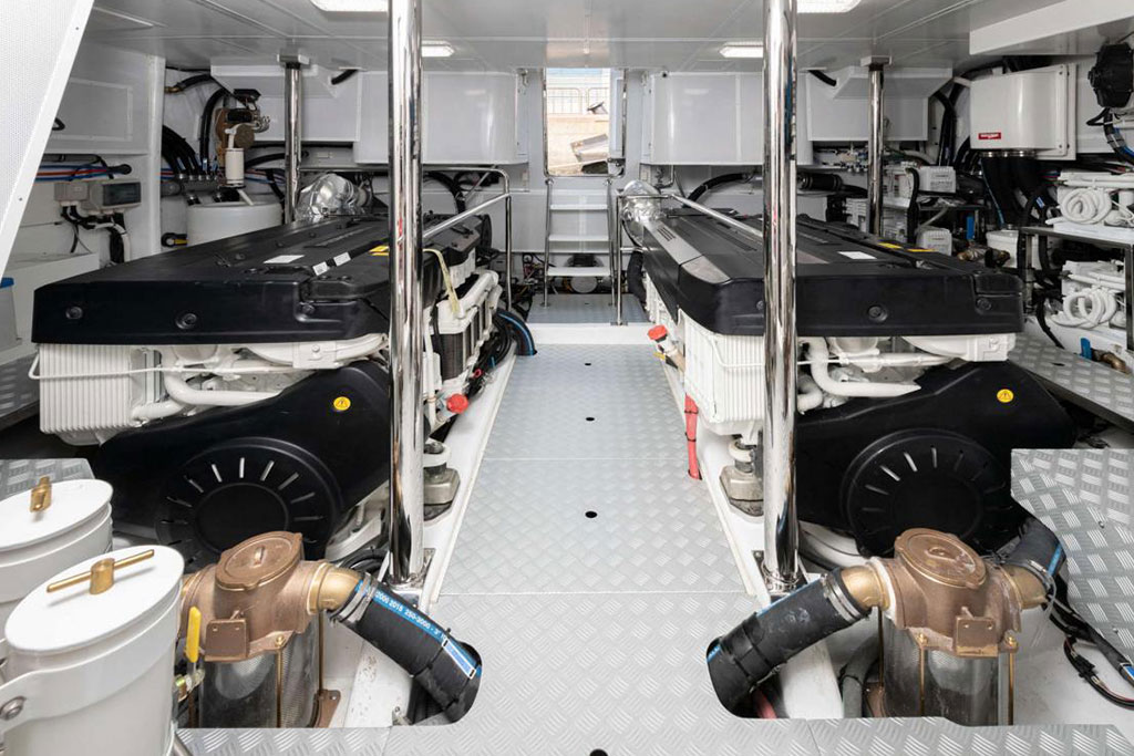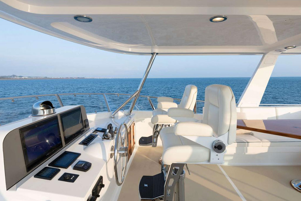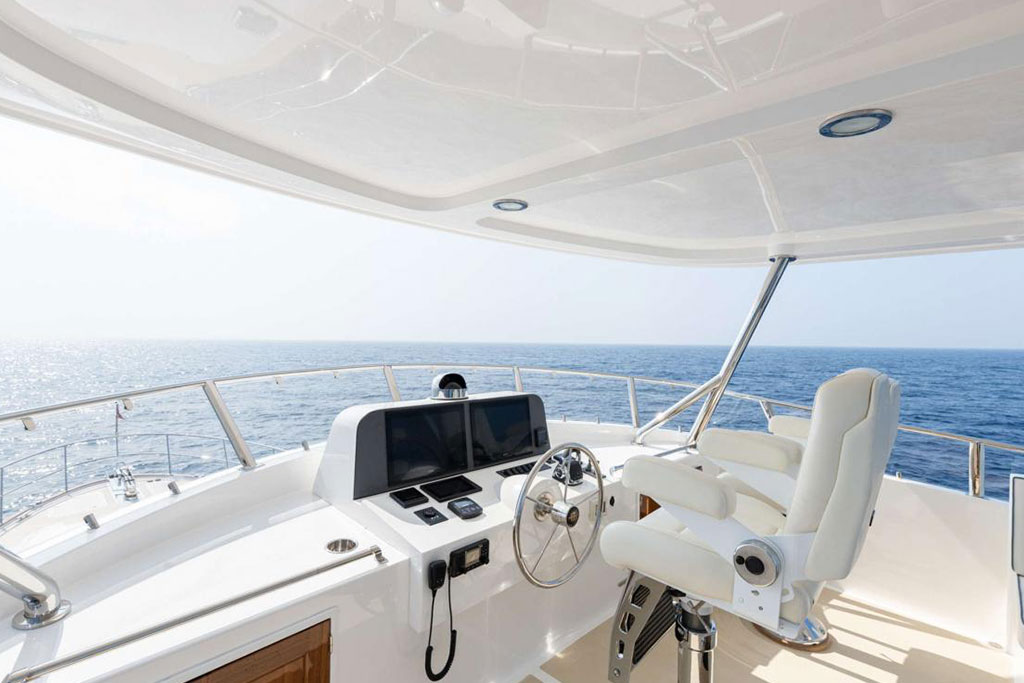 Boasting twin 1,000 hp outboard engines with a top speed of 31 knots, the Hunt Ocean 63 delivers exceptional mileage, range, and durability. A Deep-V hull with a patented 20-degree deadrise ensures smooth sailing in still waters and choppy seas, while the upper helm features two convenient chartplotters to monitor your course, location, and speed.